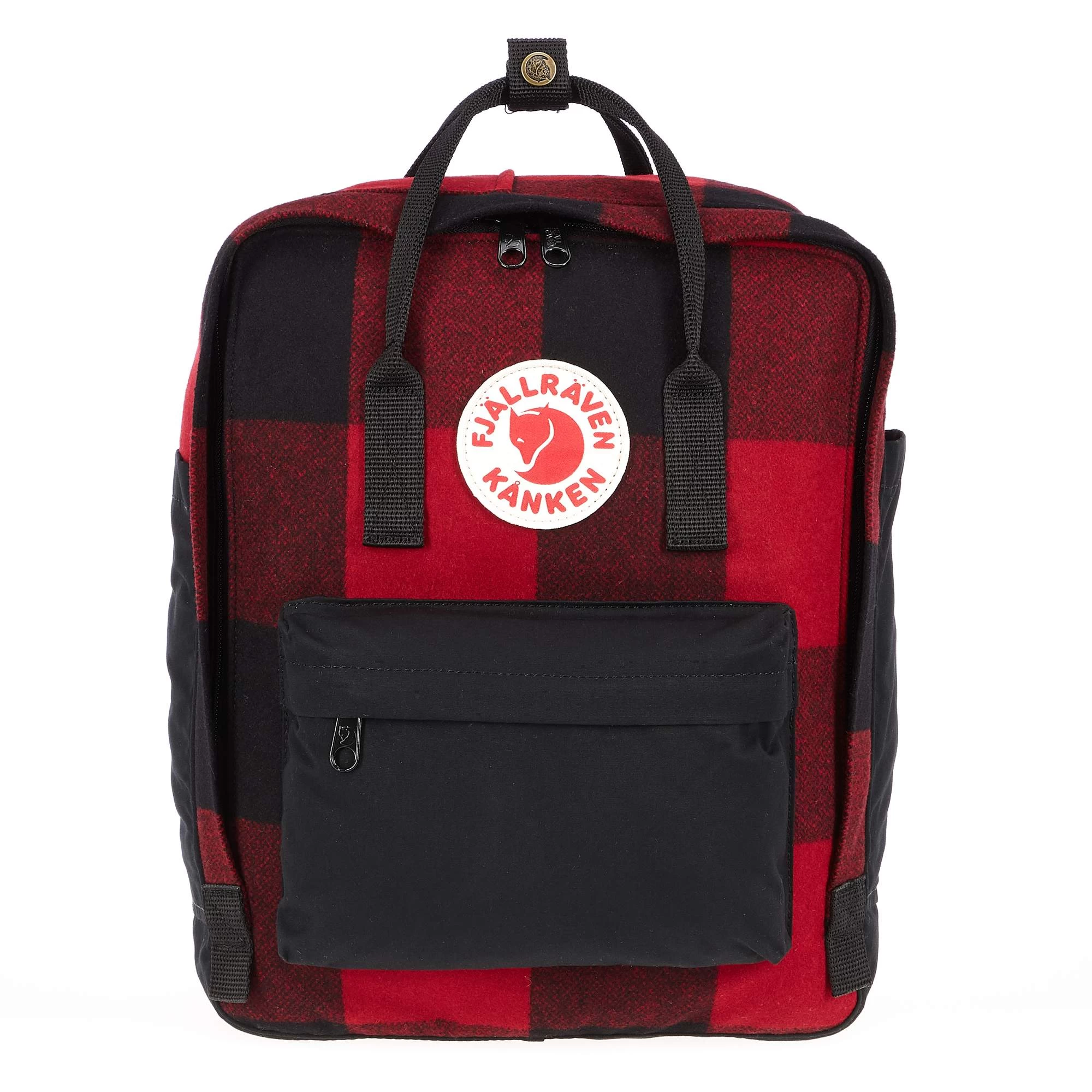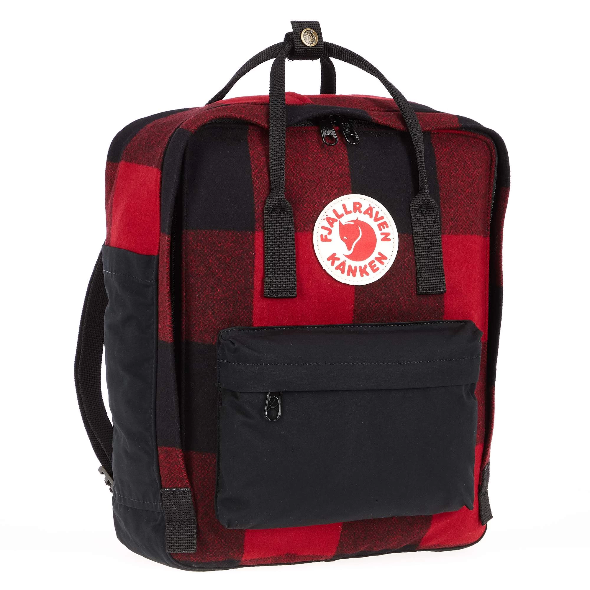 Der Kanken Re-Wool hat zwei seitliche Steckfächer, ein Namensschild innen und eine RV-Fronttasche. Die Schultergurte und die Handgriffe sind aus Gurtband gearbeitet. Ganz wie beim ursprünglichen Kanken.