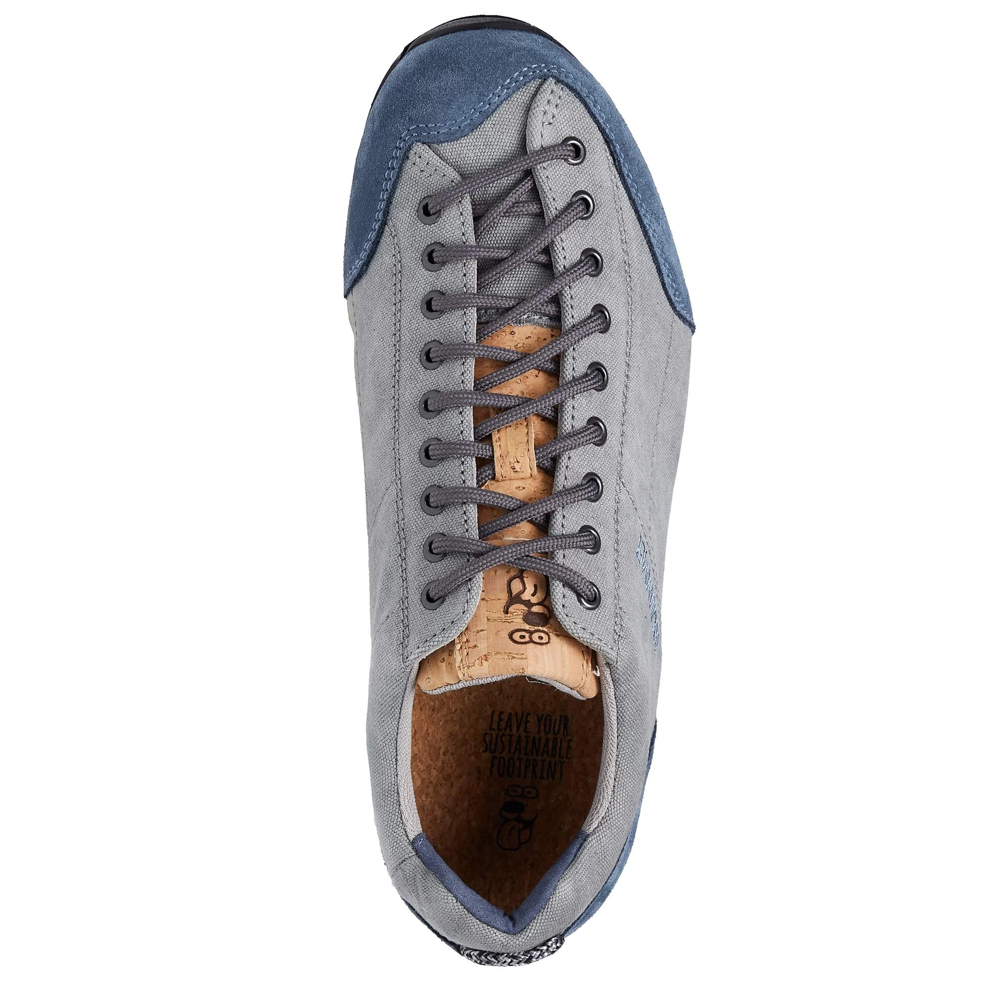 Vor allem aber besteht der hochwertige Zustiegsschuh aus außergewöhnlichem Material. Als Obermaterial kommt ein Mix aus recycelter Baumwolle, der Anteil beträgt 70% und 30% Lenzing Ecovero. Dabei handelt es sich um Viskosefasern, welche aus nachhaltigem Holz und Faserzellstoff bestehen. Im Fersen- und Zehenbereich wird es zusätzlich verstärkt um eine höhere Haltbarkeit gewährleisten zu können.