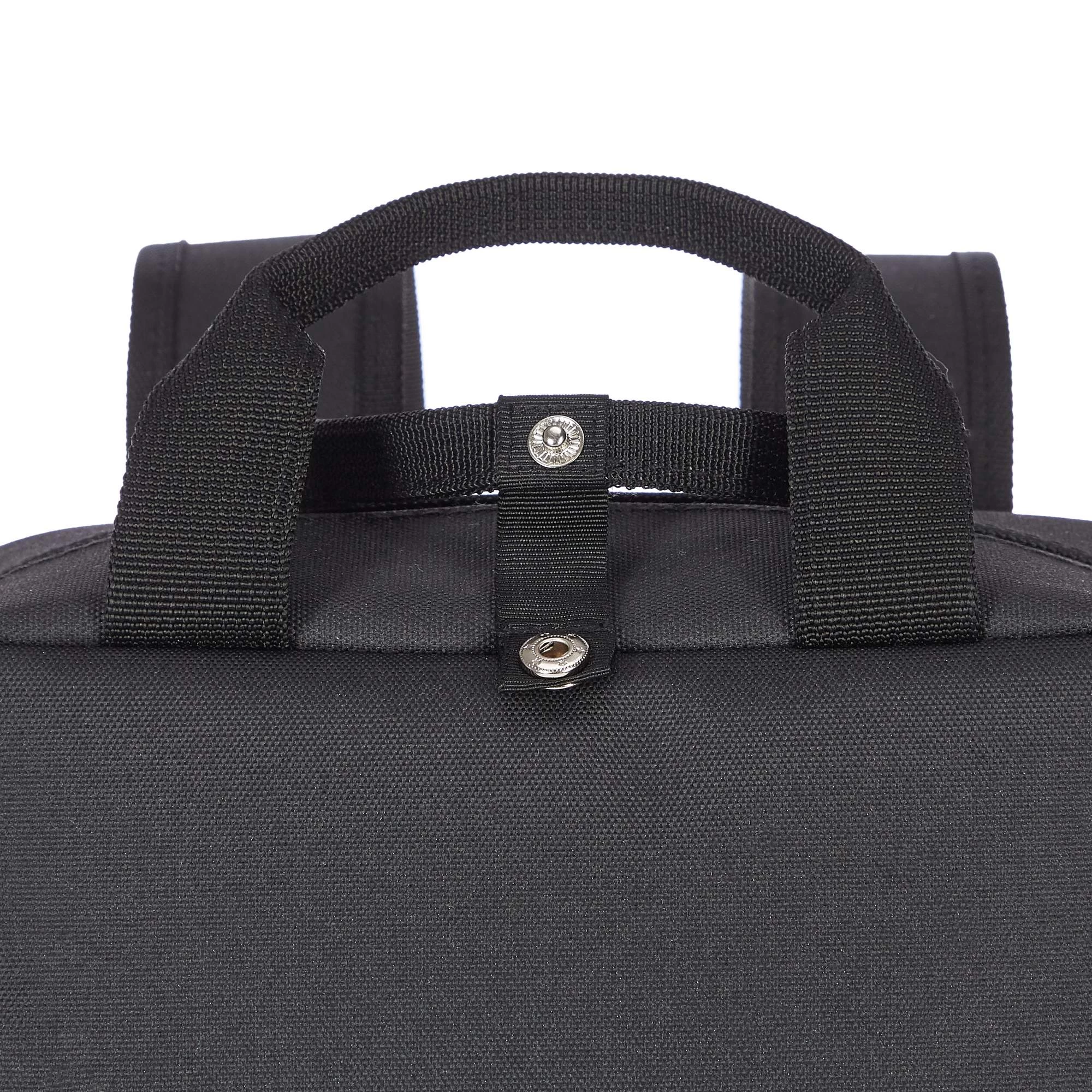 Denn neben den gepolsterten Schultergurten und den schicken Tragegriffen besitzt der Tagesrucksack eine Durchstecklasche für den Griff deines Rollkoffers. Der Daypack gehört zwar eher zu den kleinen Tagesrucksäcken, ist aber so geschnitten, dass auch A4-Unterlagen in ihn hineinpassen.
