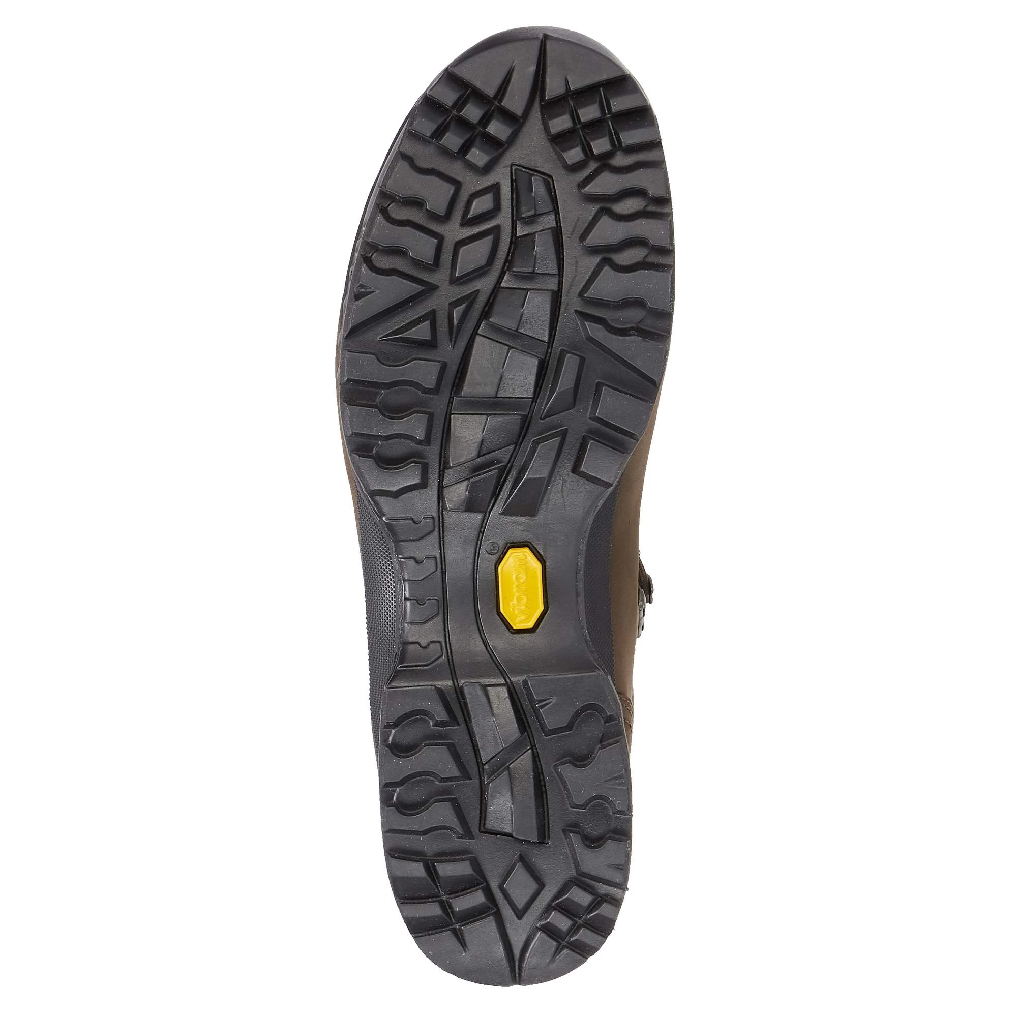 Eine Zwischensohle und ein Shock-Absorber im Fersenbereich dämpfen den Auftritt. Die feste Vibram-Laufsohle hat ein kräftiges Profil mit Brems- und Auftrittstollen. Diese mindern die Gefahr des Wegrutschens beim Auf- und Abstieg.
