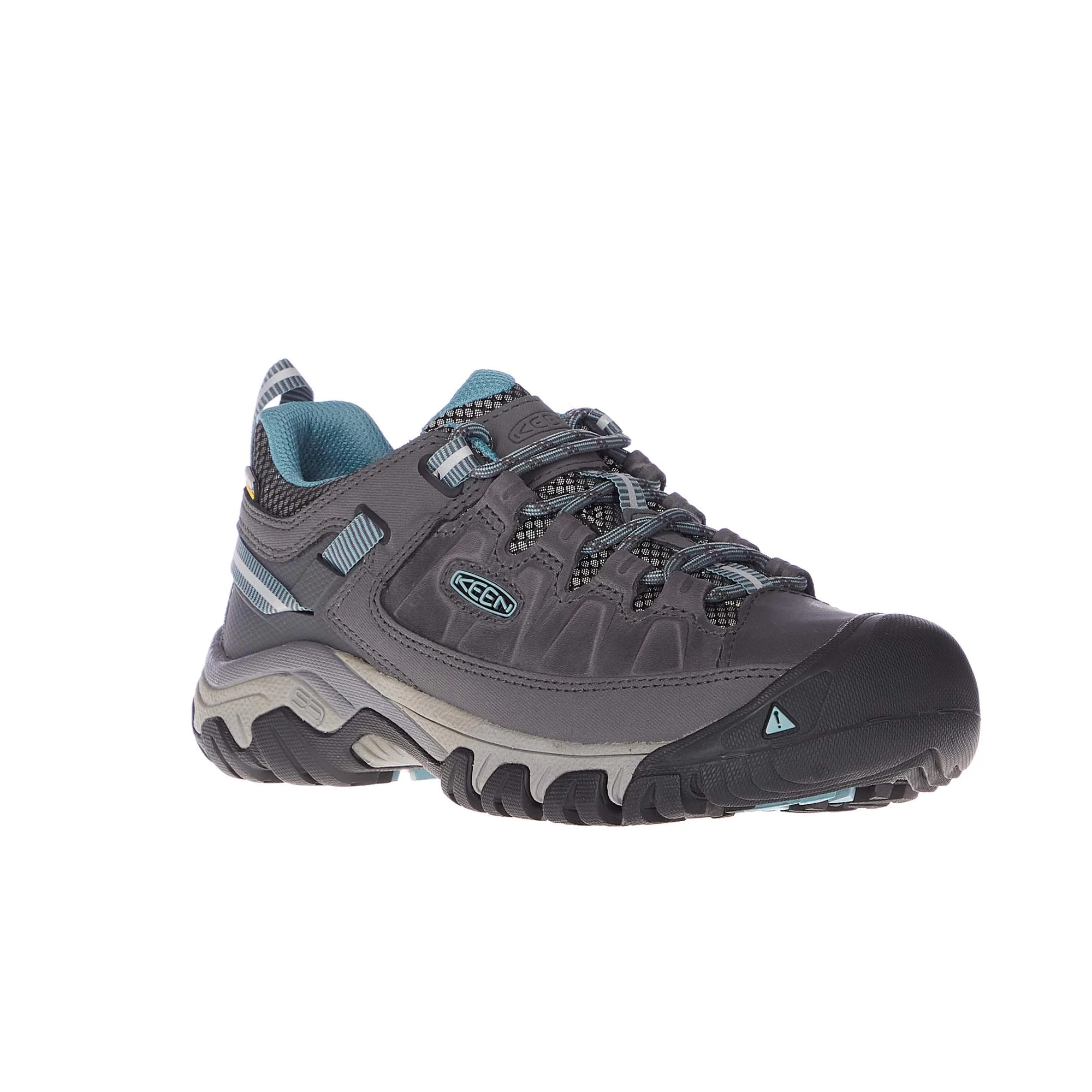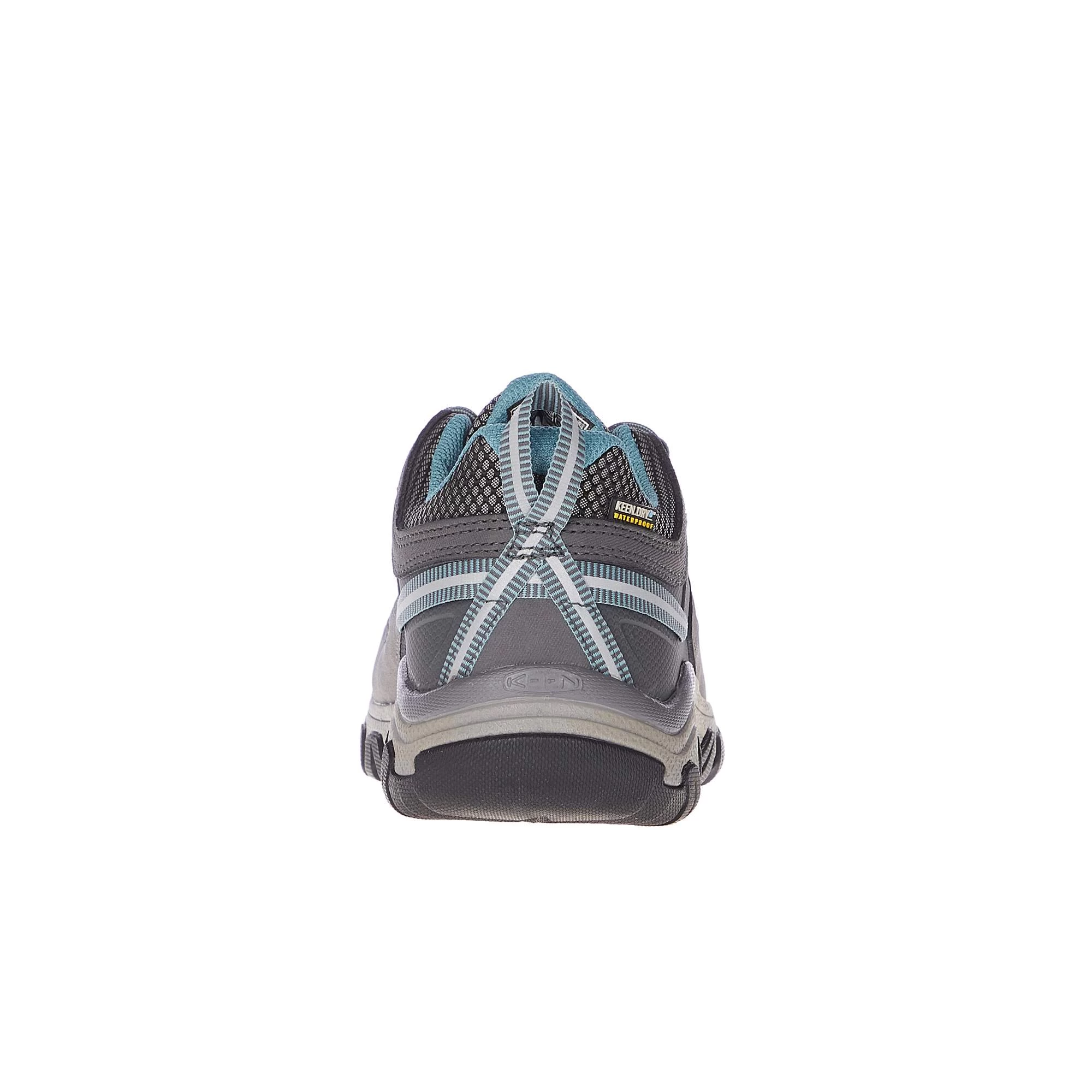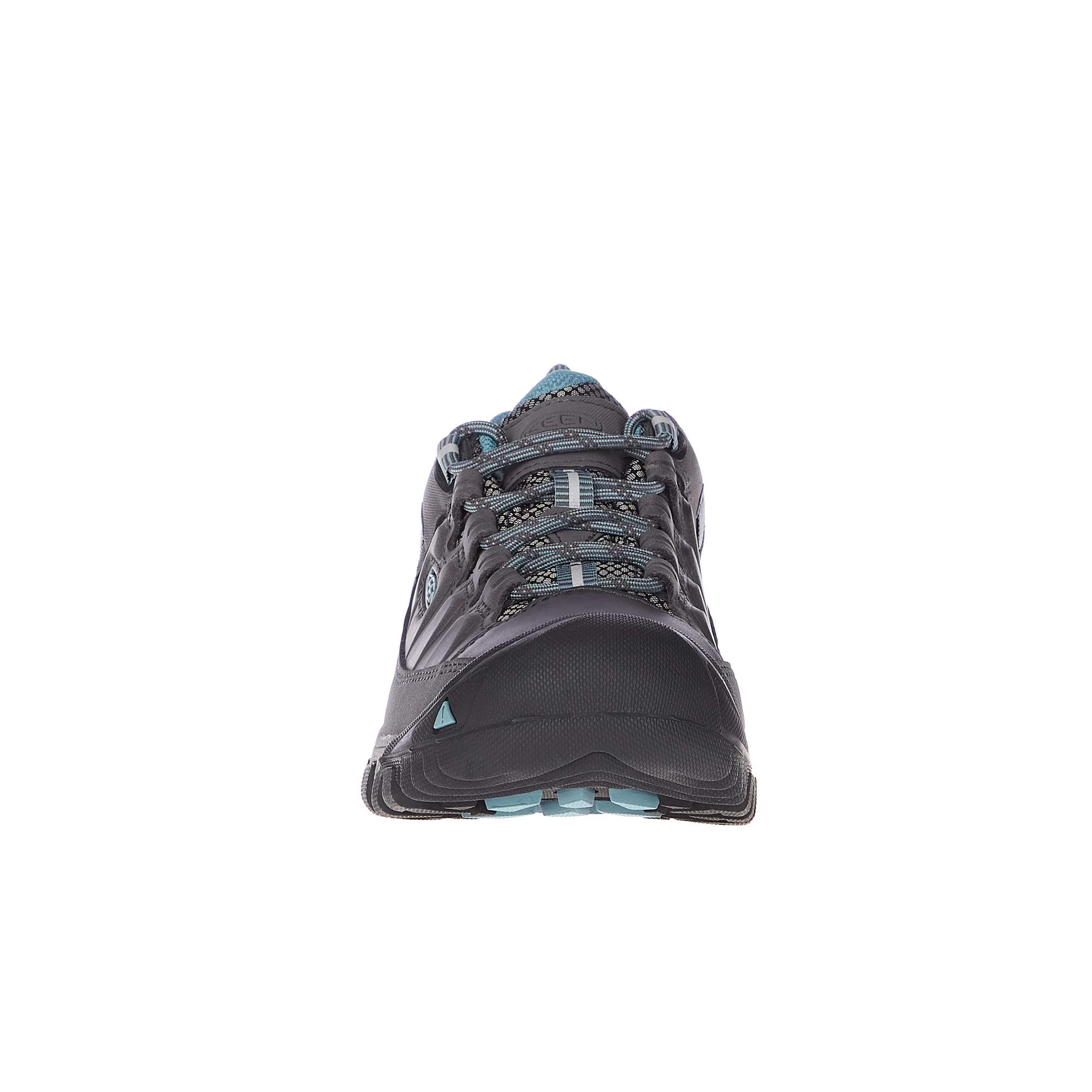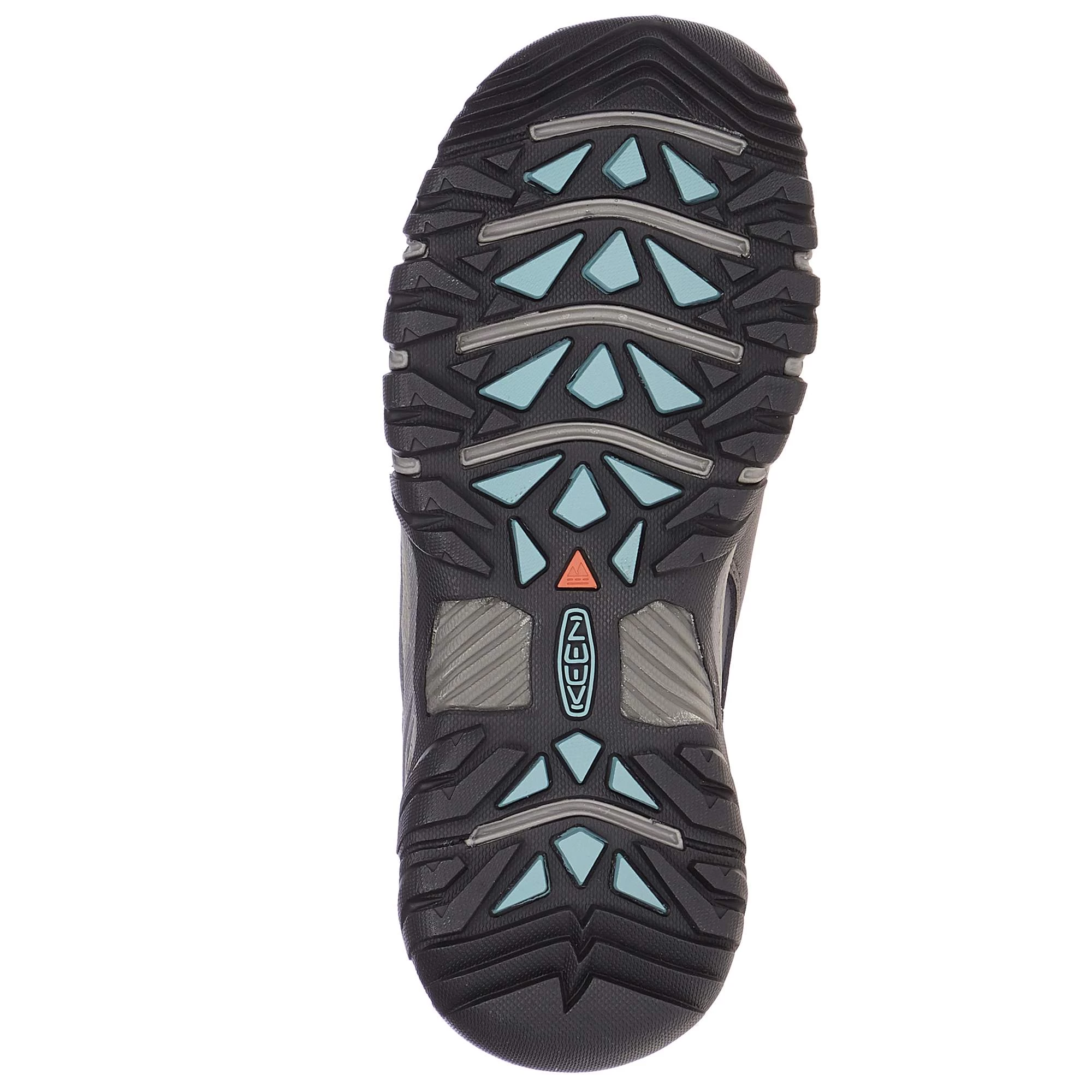 Das Oberleder ist wasserfest und oberhalb der Sohle rundum mit einem leichten Schutzrand versehen. Eine wasserdichte, atmungsaktive Membran hält die Füße zuverlässig trocken. Im Zehenbereich werden Schuh und Fuß durch die Keen-typische Schutzkappe vor Beschädigungen durch Geröll oder Äste geschützt.