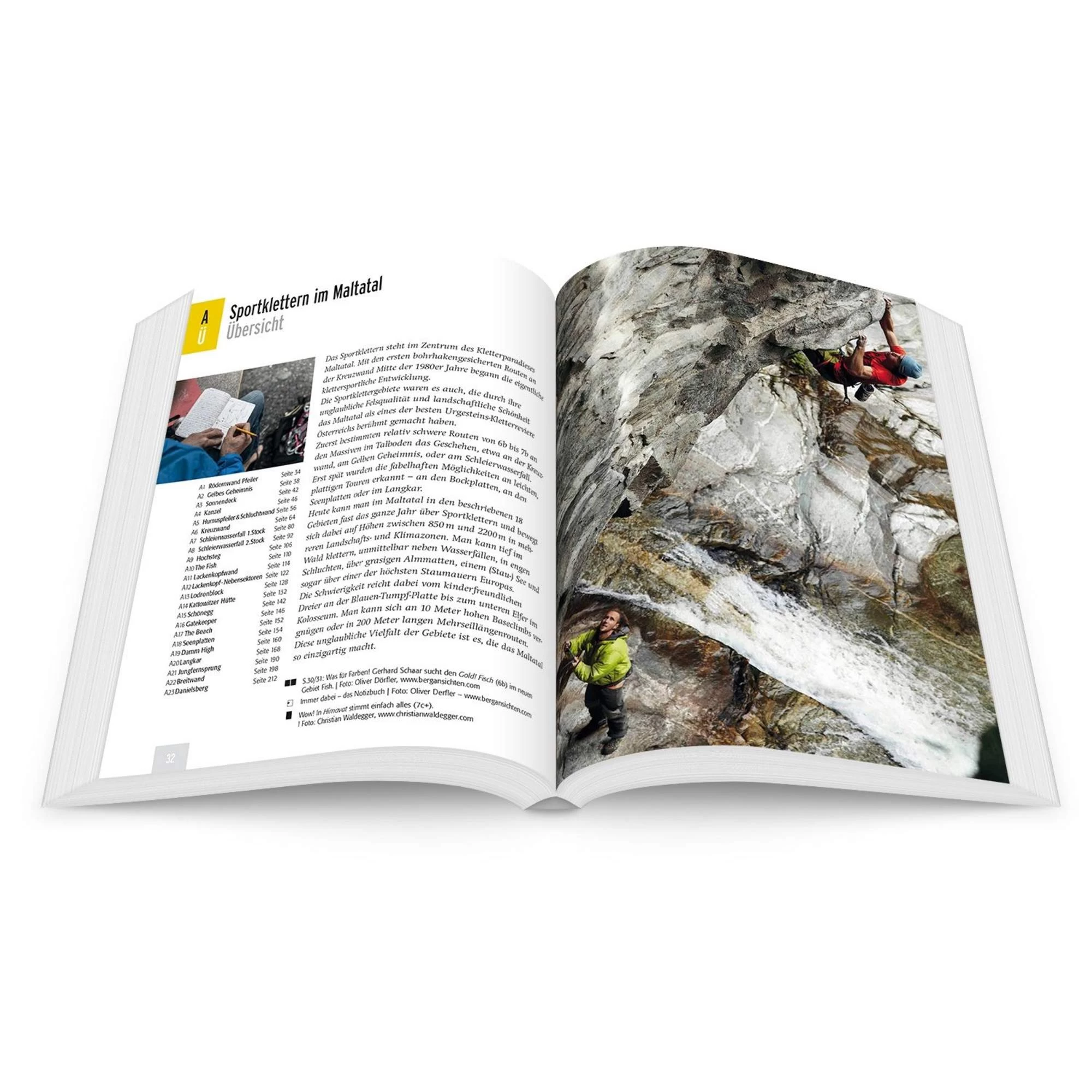 In erstaunlich kurzer Zeit hat sich das Maltatal vom Insidertipp zu einem absoluten Top-Klettergebiet entwickelt. Kein Wunder: Im romantischen Tal der Könige in Top-Bouldern fighten, sich in den Sportkletterrouten am Gelben Geheimnis die Gischt des Wasserfalls um die Ohren wehen lassen oder an Plaisir-Graten wie der Langkarscheid (IV+) hochalpine Luft am schnuppert – das Tal der stürzenden Wasser hält für jeden das Passende parat. Egal ob mit der Kletterfamilie unterwegs, als Multipitch-Einsteiger oder ambitionierter Sportkletterer. Drei zusätzliche Gebiete vor den Toren des Maltatals erweitern das Spektrum des Kletterführers seit der 2. Auflage: Darunter die Breitwand mit ihren Mehrseillängenrouten und der Jungfernsprung am Millstätter See mit Seaclimbs direkt überm Wasser. Ein sanfter Kontrast zum inneralpinen Maltatal.