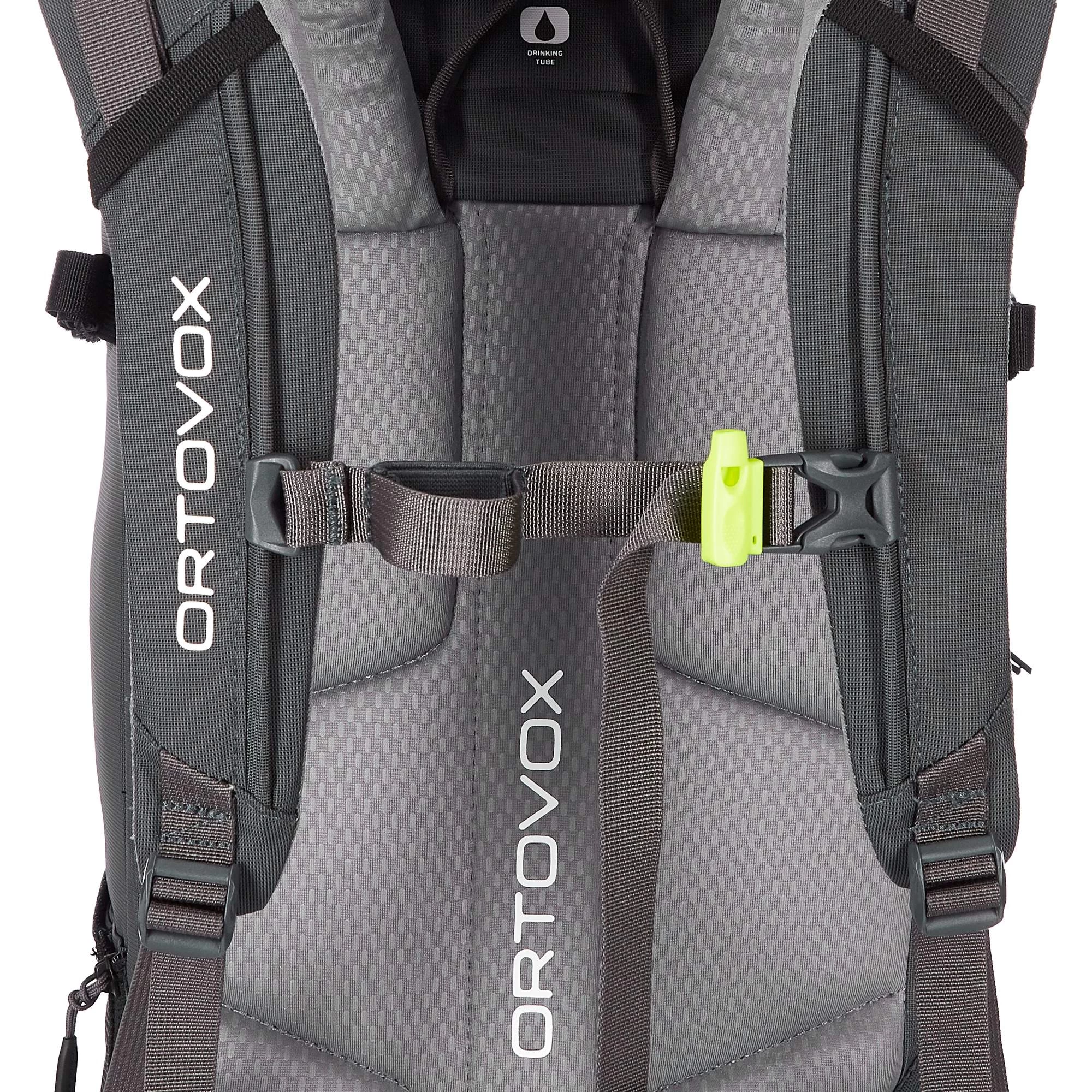 Ortovox hat dem Peak 35 ein neues Tragesystem verpasst, das Swisswool 3D Back System. Dafür wurden Wollvlies, ergonomische Schaumeinsätze und ein 3D-geprägtes Obermaterial clever kombiniert. Das Ergebnis ist ein Kontaktrücken, bei dem du trotz des festen, körpernahen Sitzes ein trockenes Tragegefühl hast. Denn an allen Kontaktpunkten befinden sich Wollpads und Wolle hat den Vorteil, dass sie bis zu 30 Prozent ihres Eigengewichts an Feuchtigkeit aufnehmen kann. Die Wollpads kommen übrigens auch an Schulter- und Hüftgurten zum Einsatz.