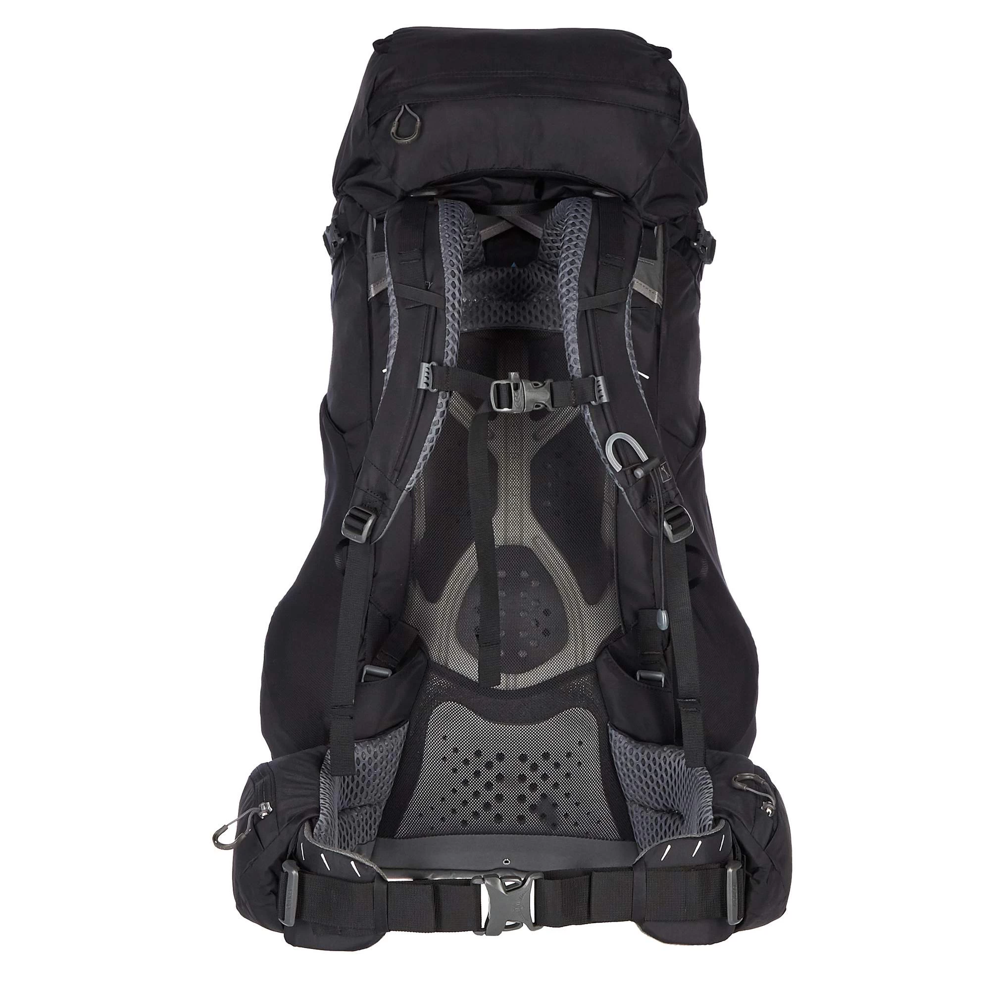 Das neue Airscape-Tragesystem besteht aus einem Kontaktrücken mit leichtem Rahmen und Rückenplatte. Das Rucksackgewicht wird über den Rahmen gleichmäßig auf die Hüfte umgeleitet. Strategisch platzierte, perforierte Schaumstoffpolster schaffen atmungsaktive und bequeme Auflageflächen. Im Lumbalbereich kommt ein größeres, ergonomisch vorgeformtes Polster zum Einsatz.