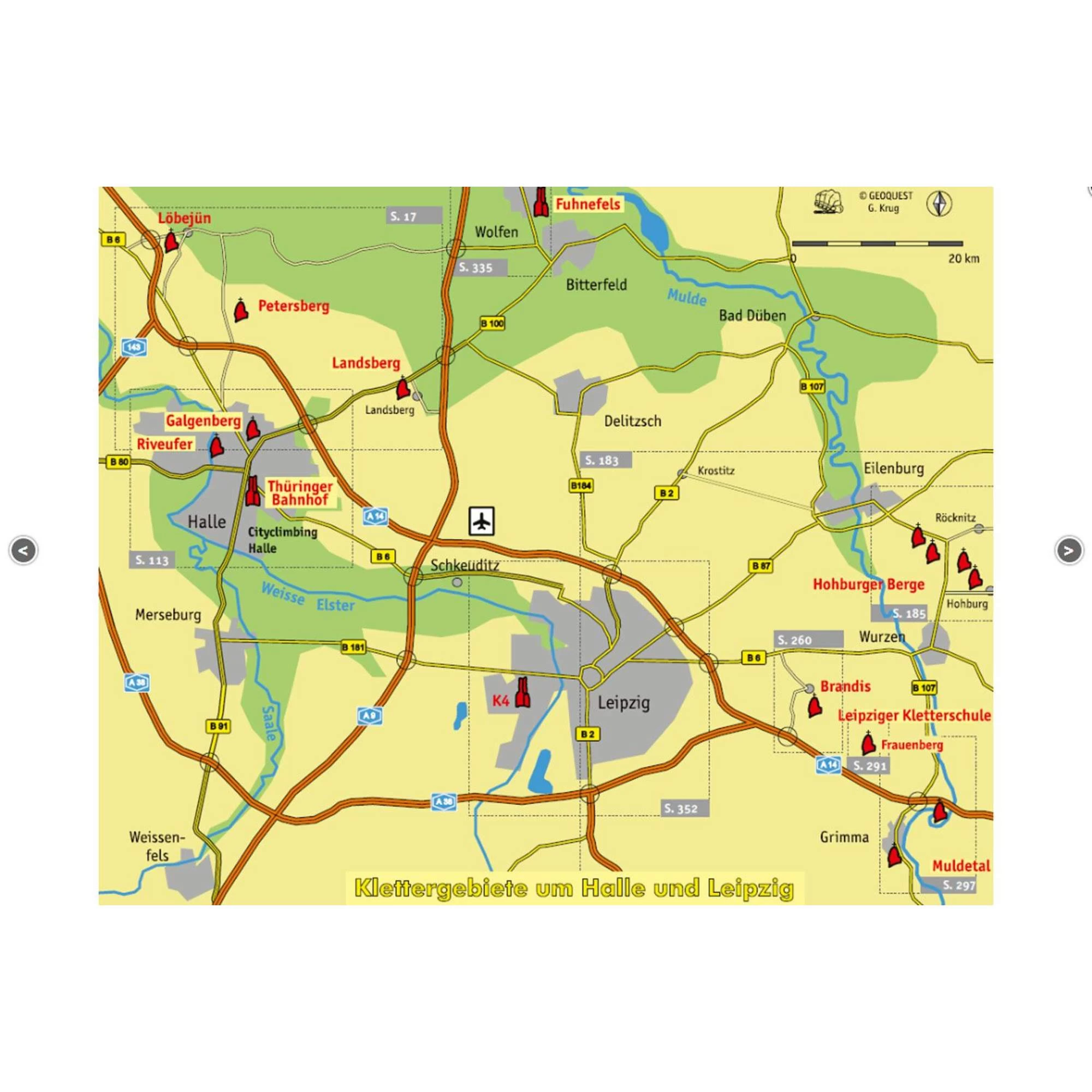 - mit vielen Klettergebieten, wie Löbejün, Hohburger Berge, Leipziger Kletterschule, Muldetal usw. sehr informativ
